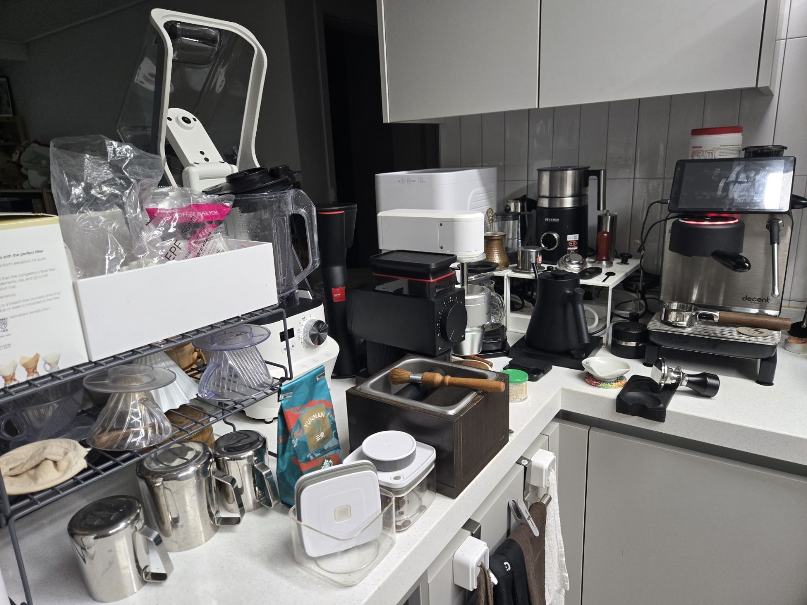커피 장비 재배치 완료 더 넓게 배치하고 싶지만 전원 문제도 있어서 그냥 이정도로 포기