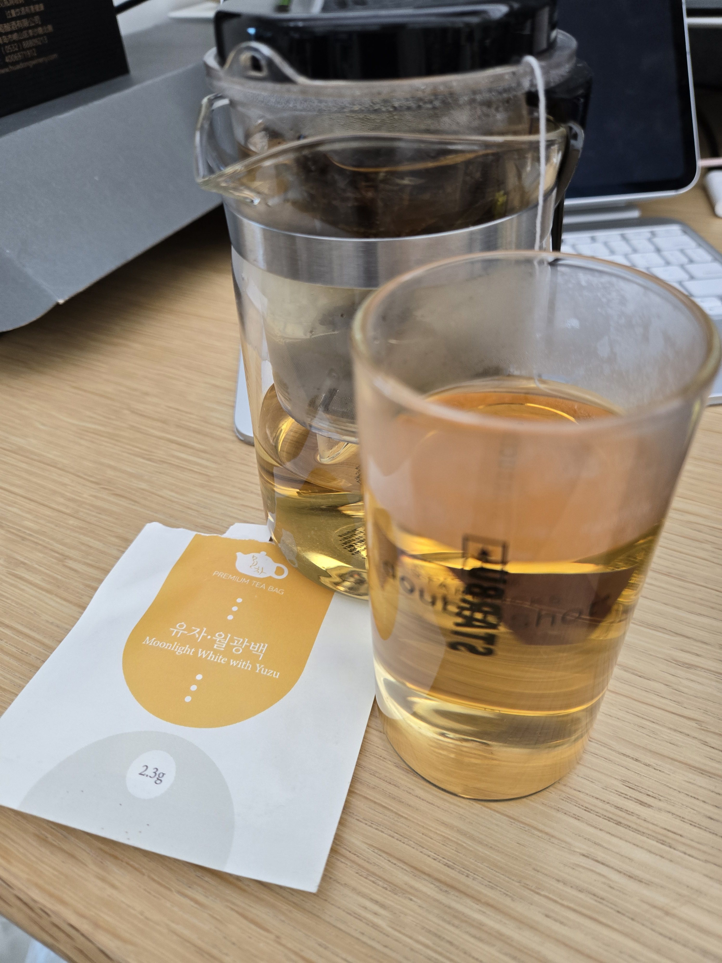 요즘 사무실로 출근 하는김에 쟁여둔 티백을 하나씩 가져다 아침에 소비하고 있다. 오늘은 유자 월광백
