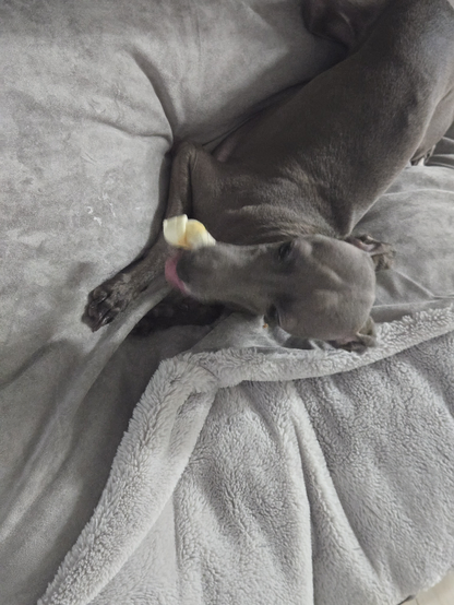 개껌 한번 집안에서 줘보니 베드에 들고가서 열심히 물어뜯네, 뭔가 어금니로 씹어야 먹을 수 있다는 것을 깨닫는 것 같기도하고