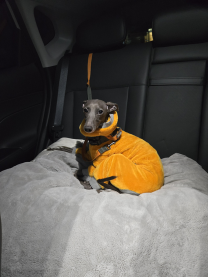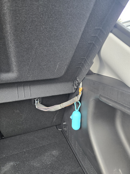 @yoorm 조수석 뒷좌석에 베드 올리고 뒷좌석 뒤에 고리가 있어서 목줄 반대편 고정함. 조금 짧긴하지만 앉고 엎드려 있기 충분한 길이가 되더라고