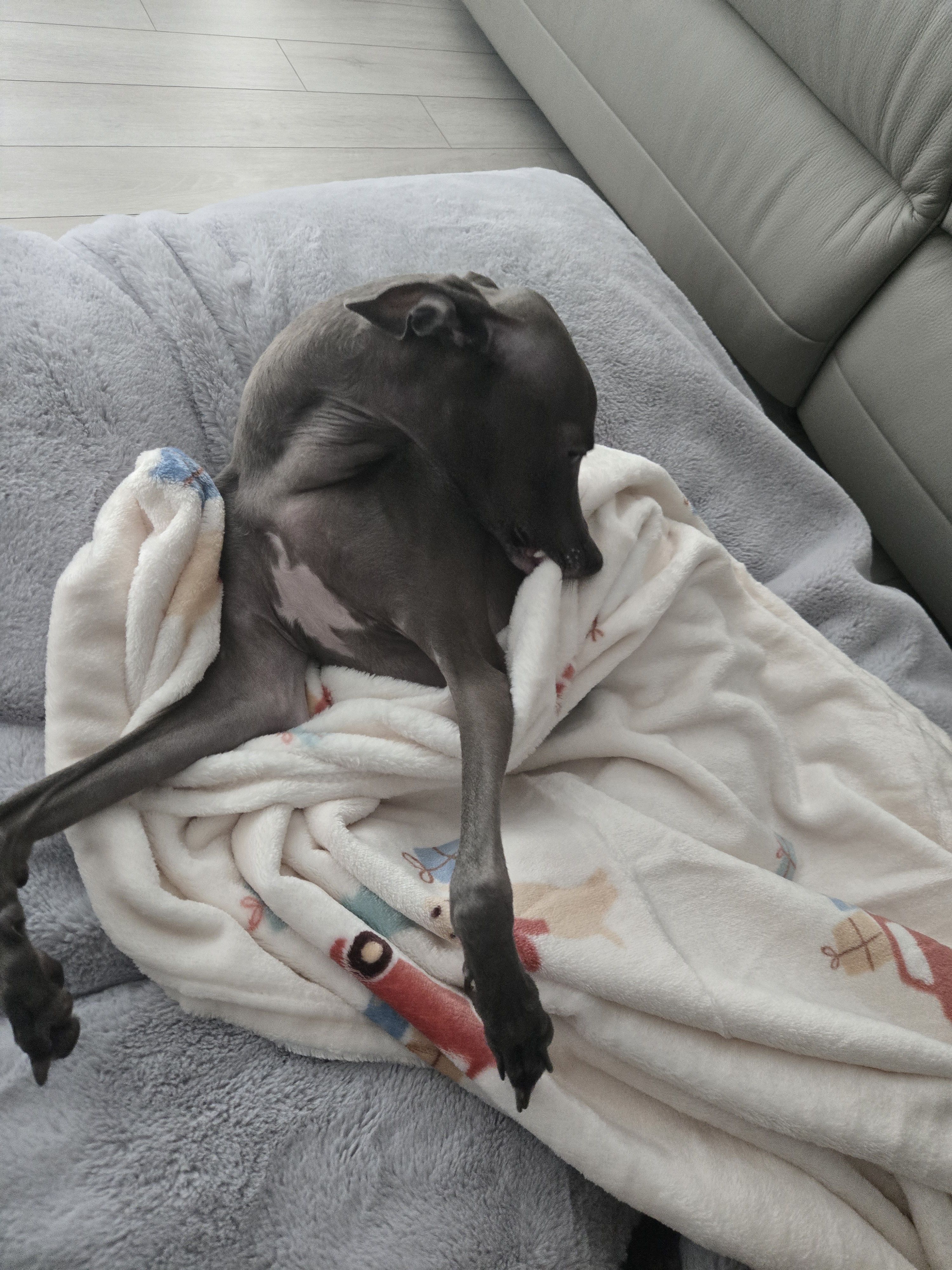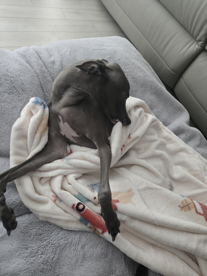 아침 산책 후에 침대로 가는 것을 싫어하는 것을 알았는지 이제는 베드로 알아서 이동. 그래도 이불과 베개는 다 치움